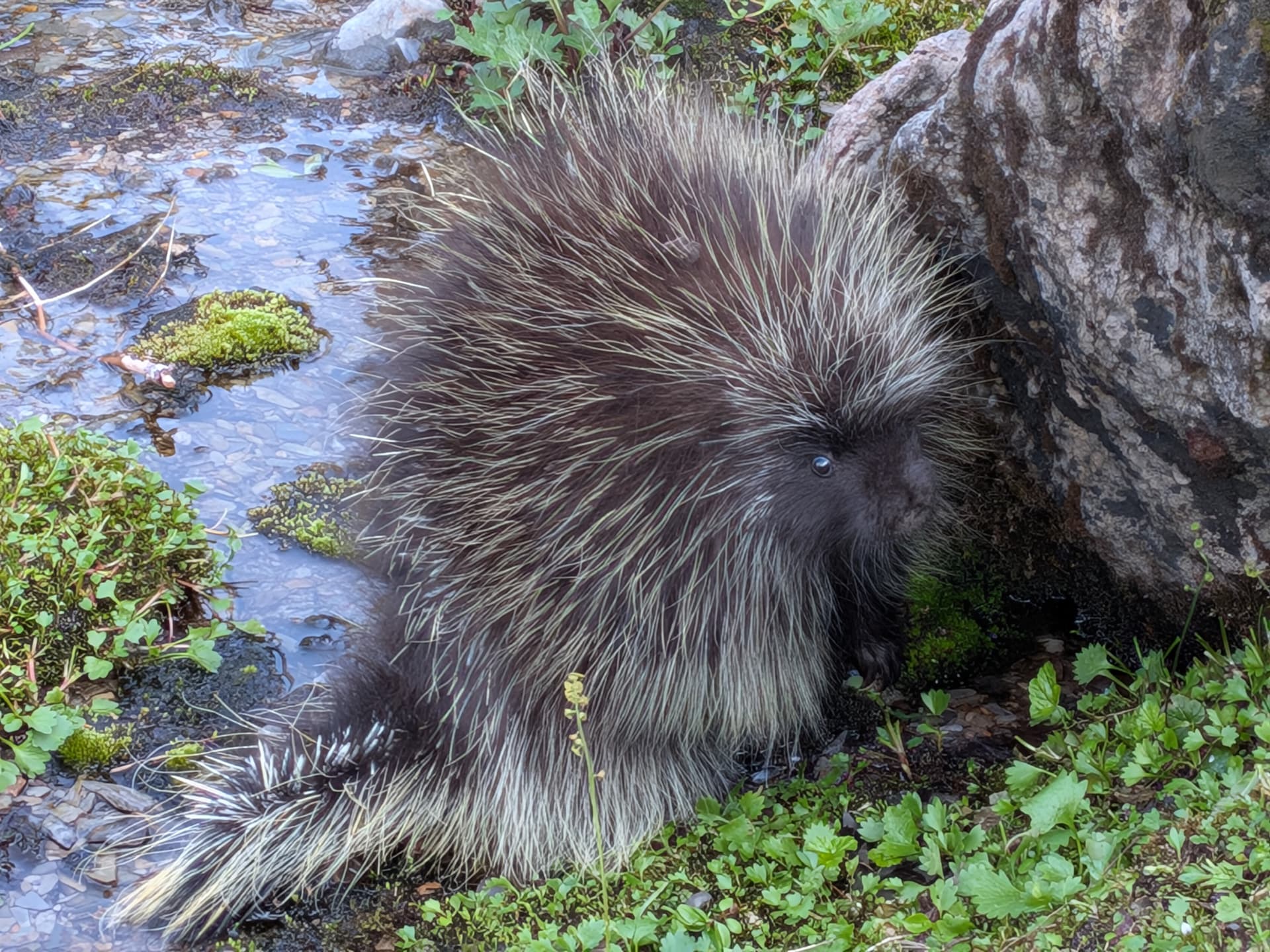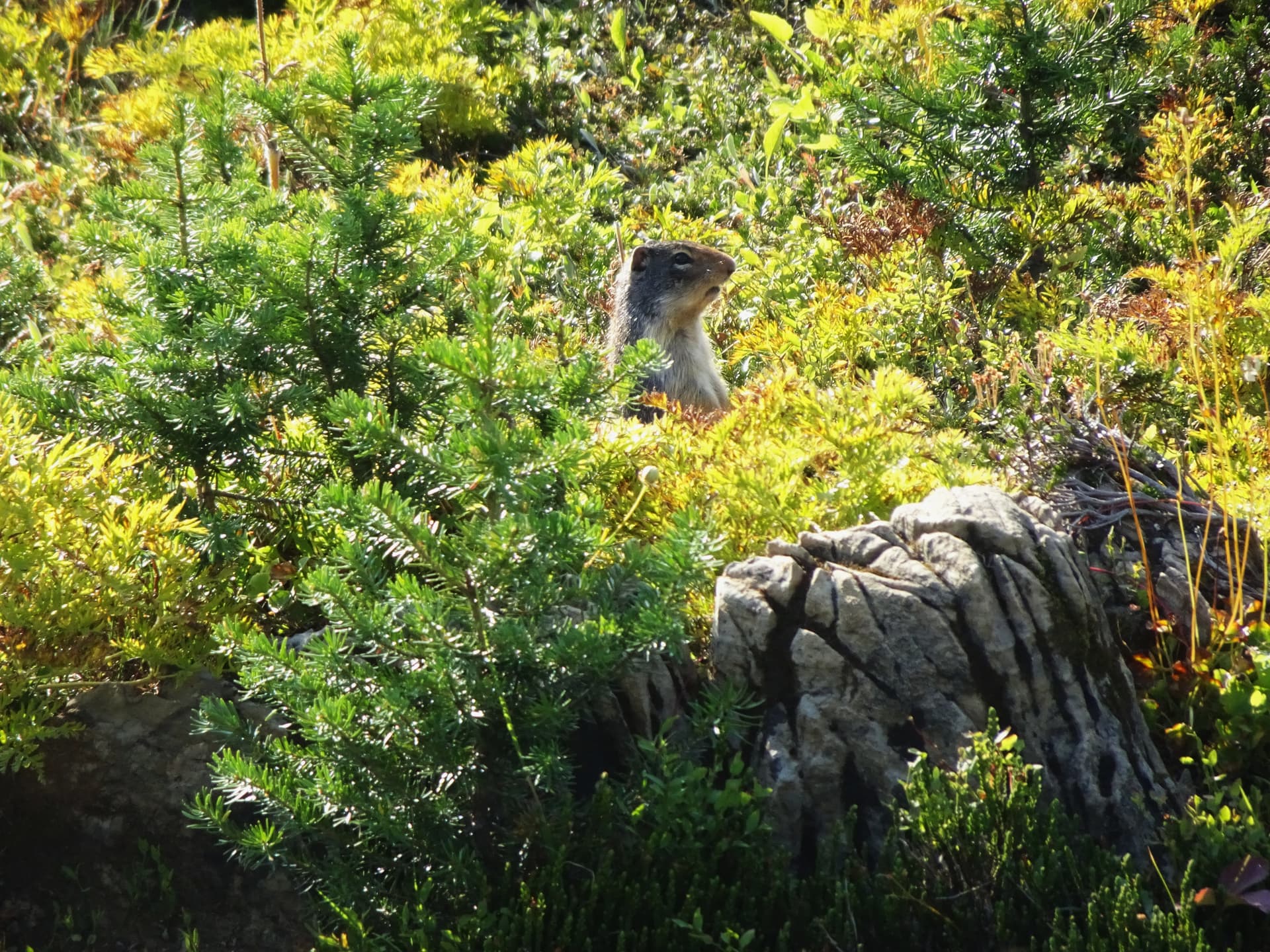 We were blessed with a few great wildlife encounters. Many Columbia ground squirrels lived in the meadows close to the lodge, we spyed mountain goats on several of the days, a shy porcupine was discovered on our last big day (shyly trying to hide his head behind a rock), a resident raven pair accompanied us in the high places and many lovely birds were spotted in the trees surrounding the three decks at the lodge.