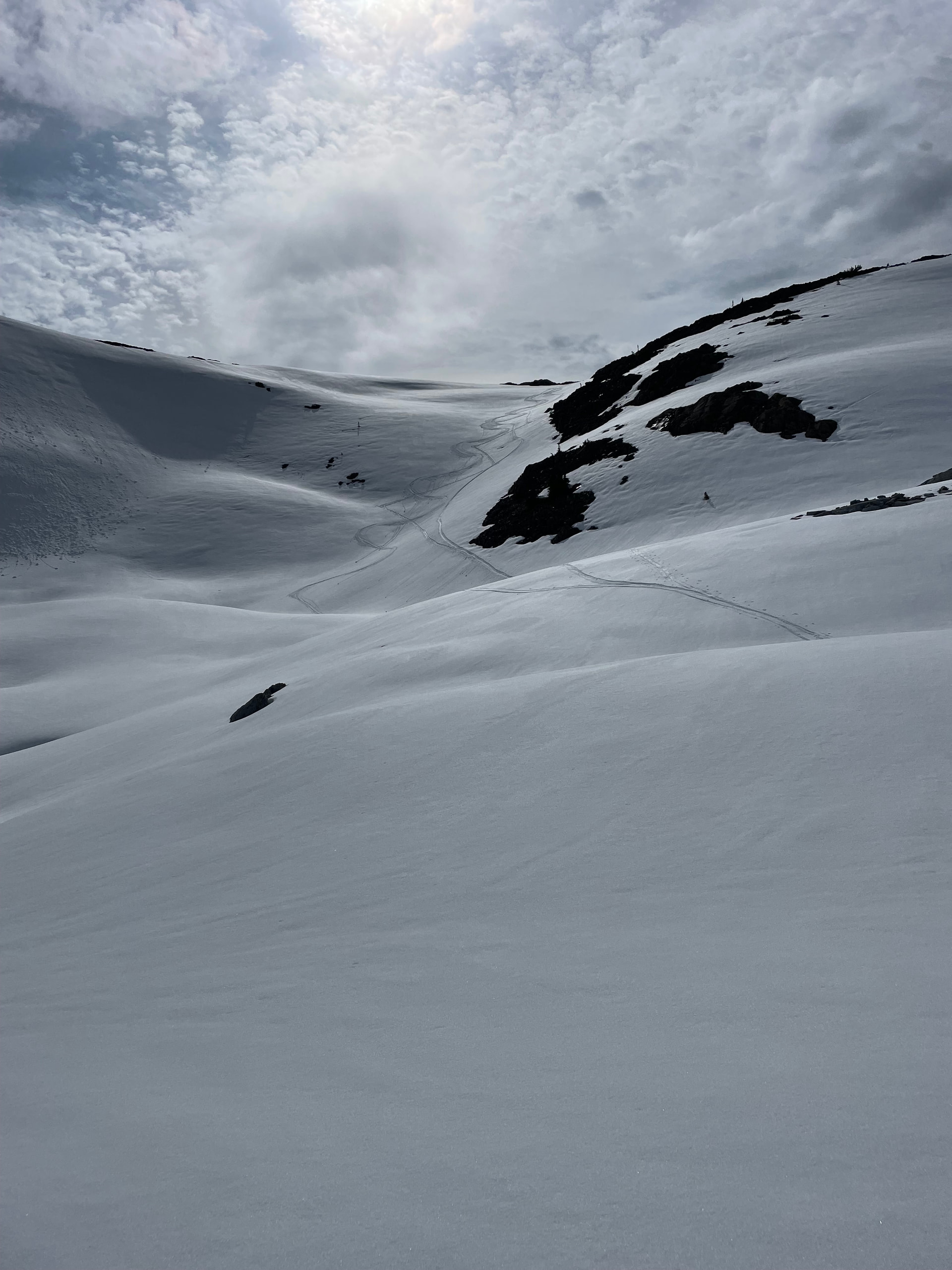 Started having some major issues with skins not sticking. Thought it was the moisture but realized it was also some layer of pollen or algae on the surface of the snow that was potentially causing problems. Lots of skins off, skins on also likely didn’t help. By the