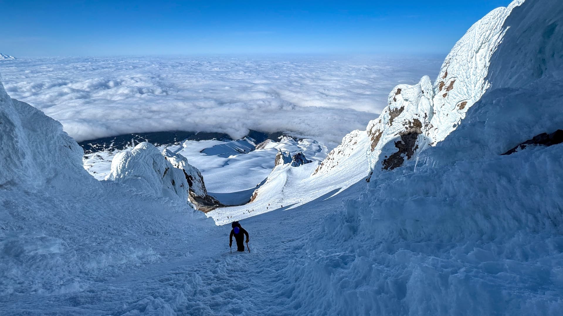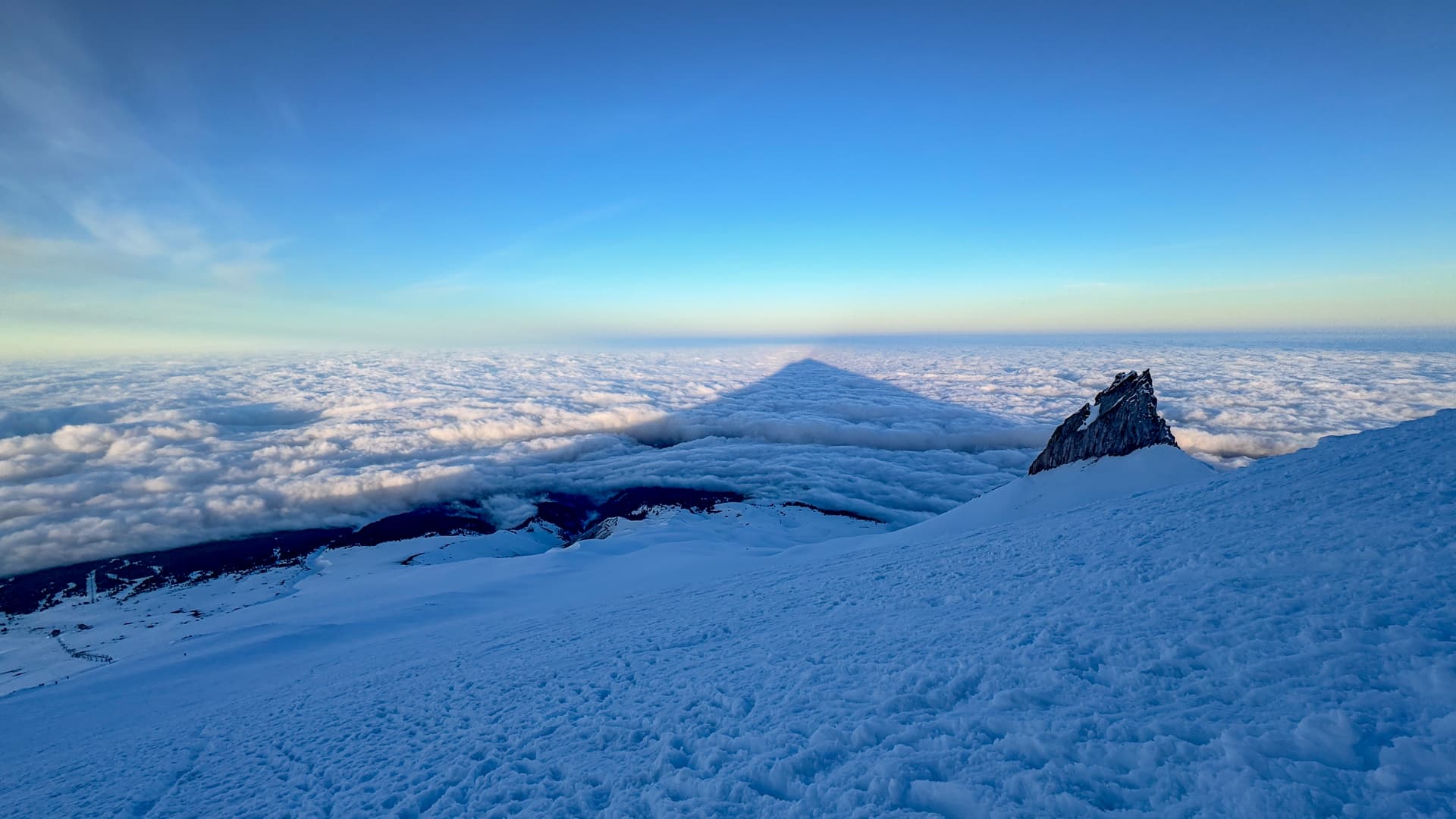 In late April 2025, I summited Mount Hood in Oregon. The easiest route to the summit and commonly climbed south side route crosses the Palmer snowfield / Palmer glacier. Apparently, the glacier stopped moving in the 1980s and is now technically considered “extinct” - this explains why climbers rarely rope-up (although I definitely crossed a well-defined bergschrund on my way to the summit headwall).