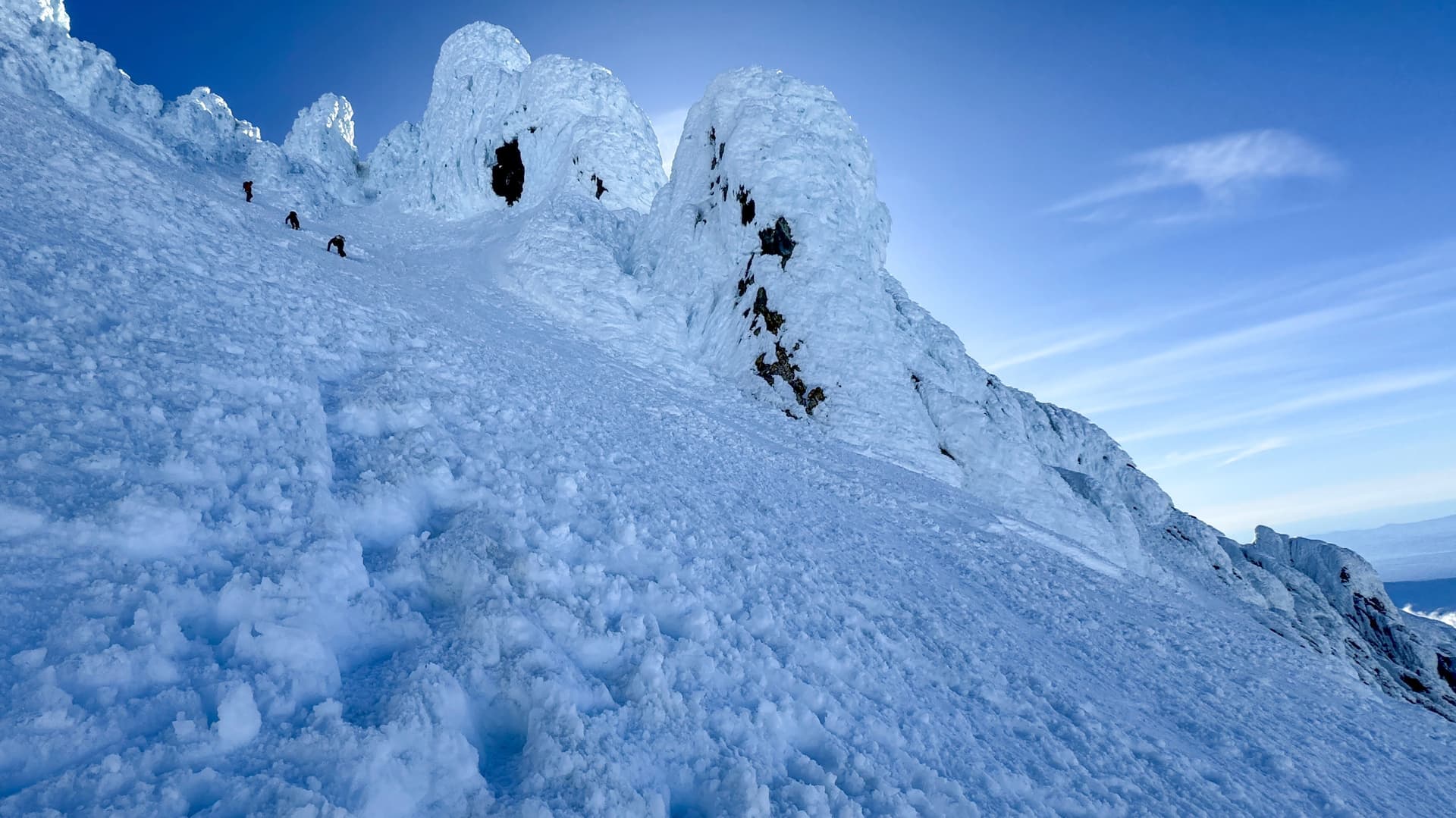 (Rime ice and steep snow couloirs to the summit)